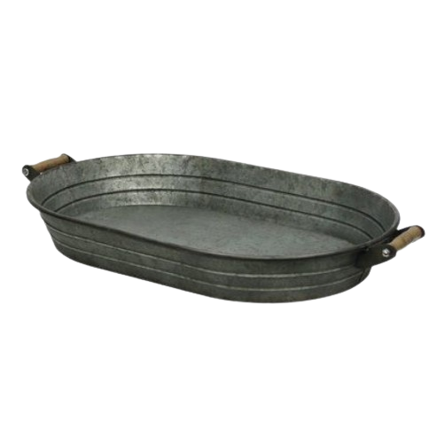 Vajilla de cocina, mango de cuerda decorativo, bandeja de servicio galvanizada redondeada, venta al por mayor, bandeja galvanizada de Metal súper vendida