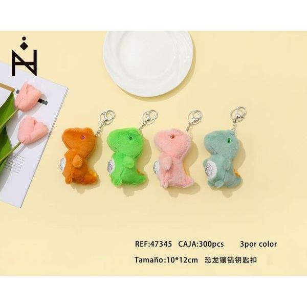 Llavero de dinosaurio con diamantes de imitación, colgante de peluche de 10x12cm para bolso y llavero