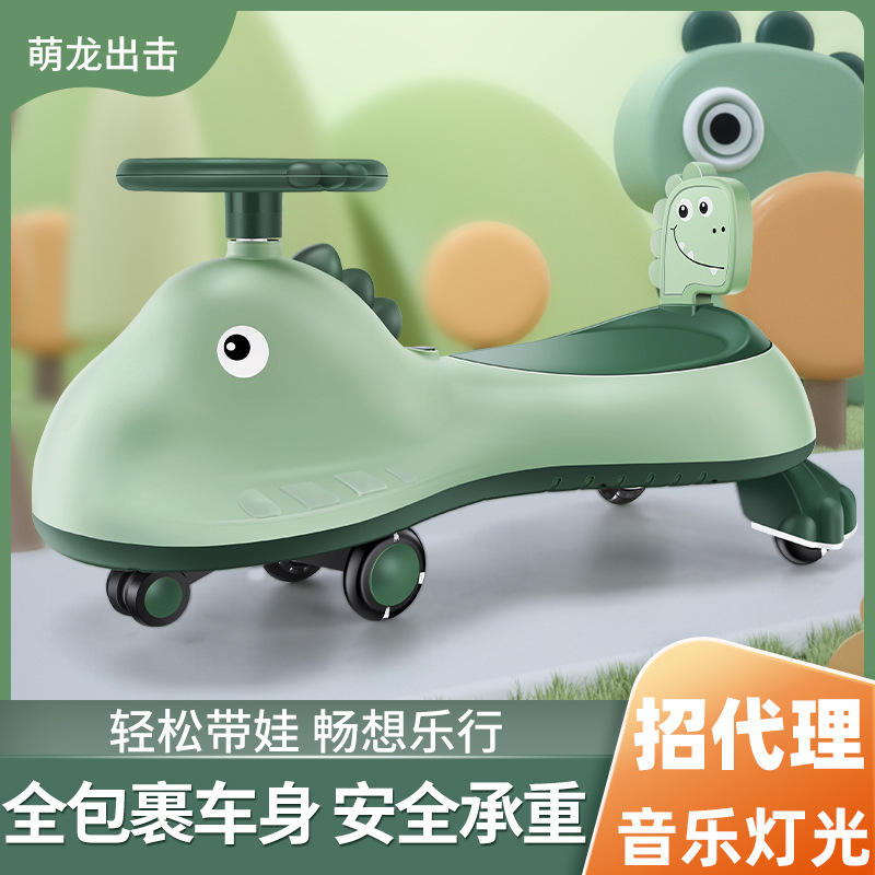 Juguete de dinosaurio para montar para niños de 2 a 4 años, de plástico verde con ruedas giratorias, unisex, para jugar al aire libre