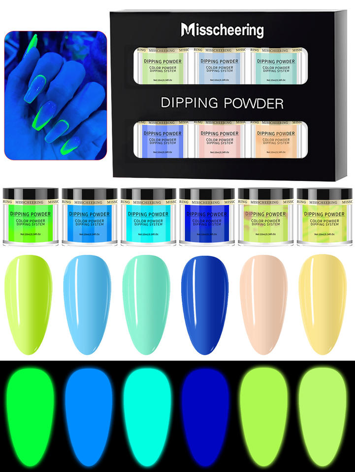 Kit de Uñas con Polvo para Decoración, 6 Piezas, Secado Rápido, Colores Verde y Azul de Verano, Manicura Francesa para Uso en Casa o Salón