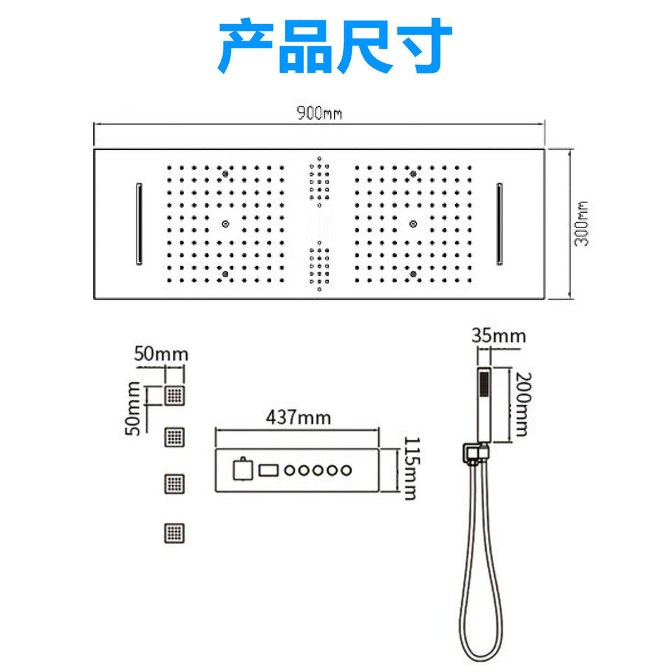 Juego de ducha empotrado Dipsi de acero inoxidable, termostático rectangular para uso doméstico