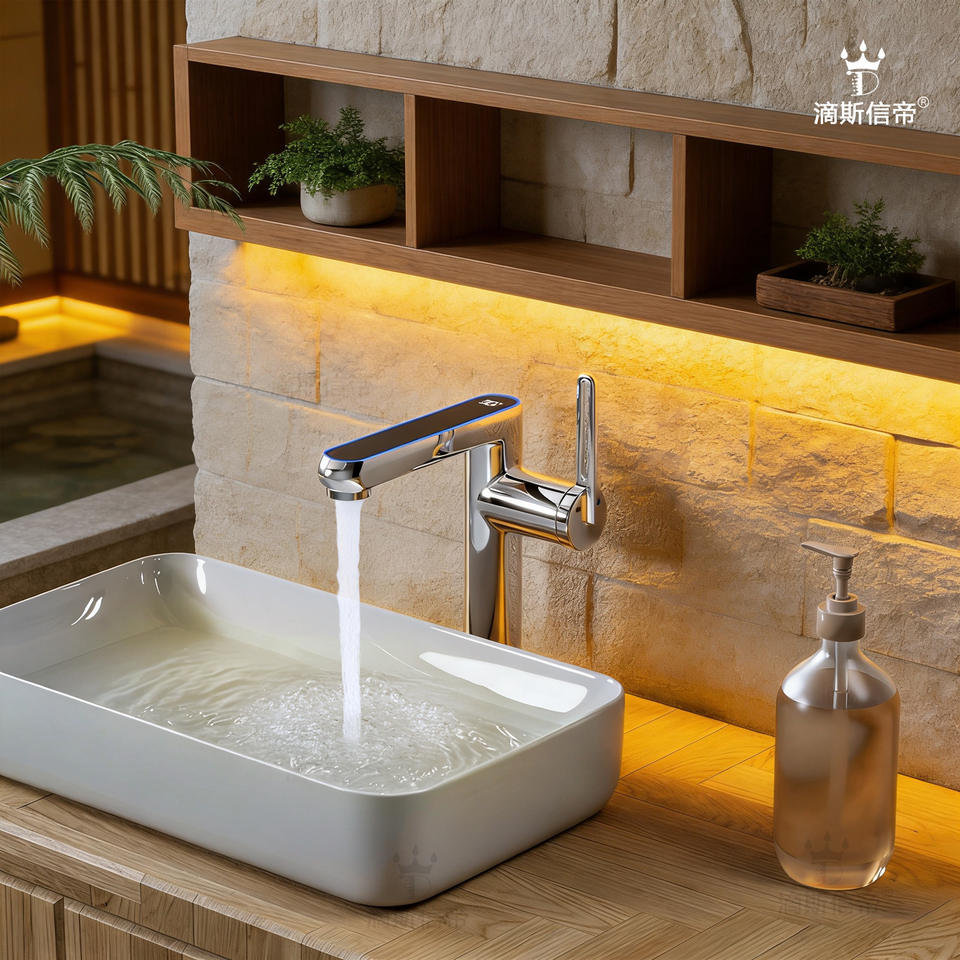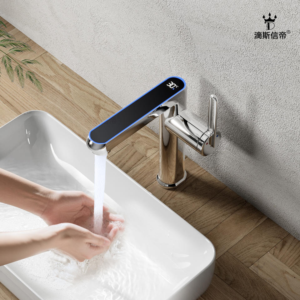 Grifo de Lavabo Inteligente Dipsi Emperor con Pantalla Digital, Monomando, Montaje en Encimera, Válvula de Cerámica, Iluminación LED