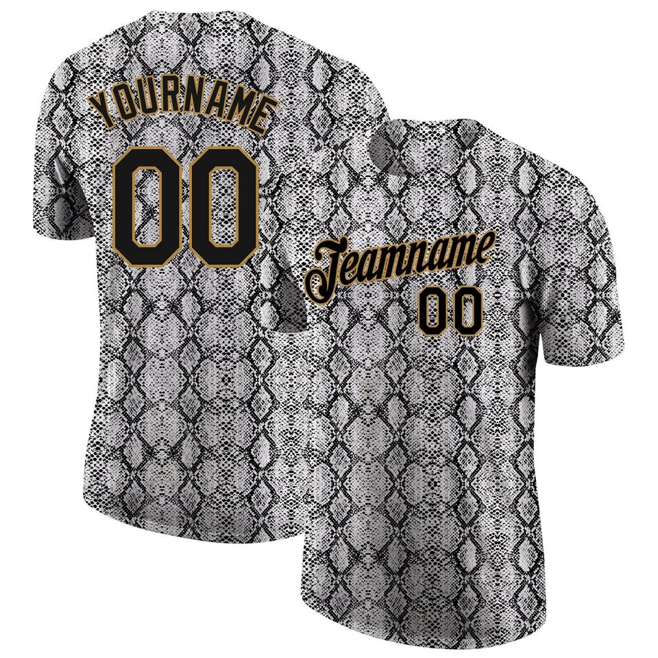 Direct Engro Sportswear Venta al por mayor Custom Black-Old Gold 3D Pattern Design Snakeskin Performance T-Shirt