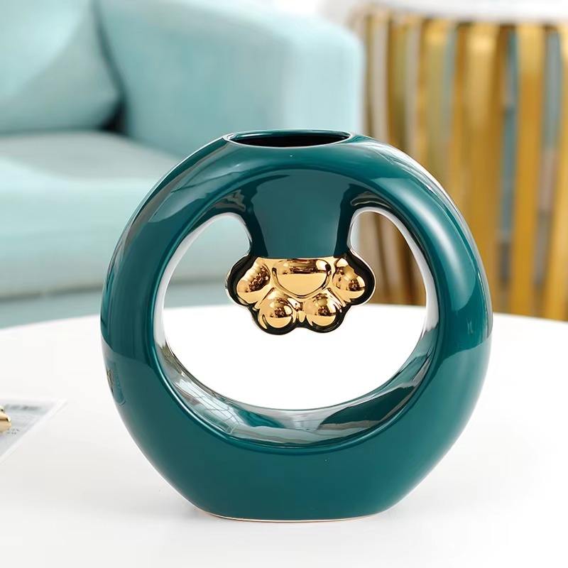 Jarrón de cerámica de estilo minimalista nórdico de diseño personalizado directo de fábrica, decoración de jarrón de color verde, adorno artístico de escritorio