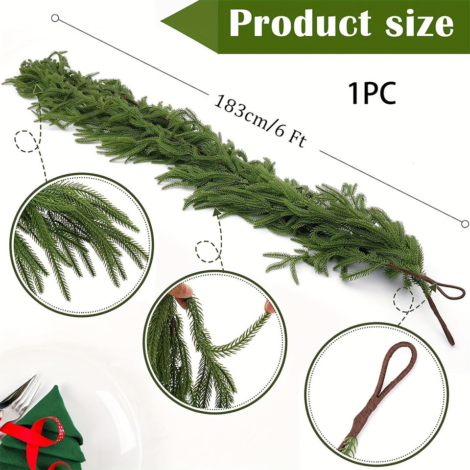Guirnalda de pino de longitud personalizada de fábrica directa, estilo Norfolk, vacaciones, vid, Navidad, chimenea, decoración
