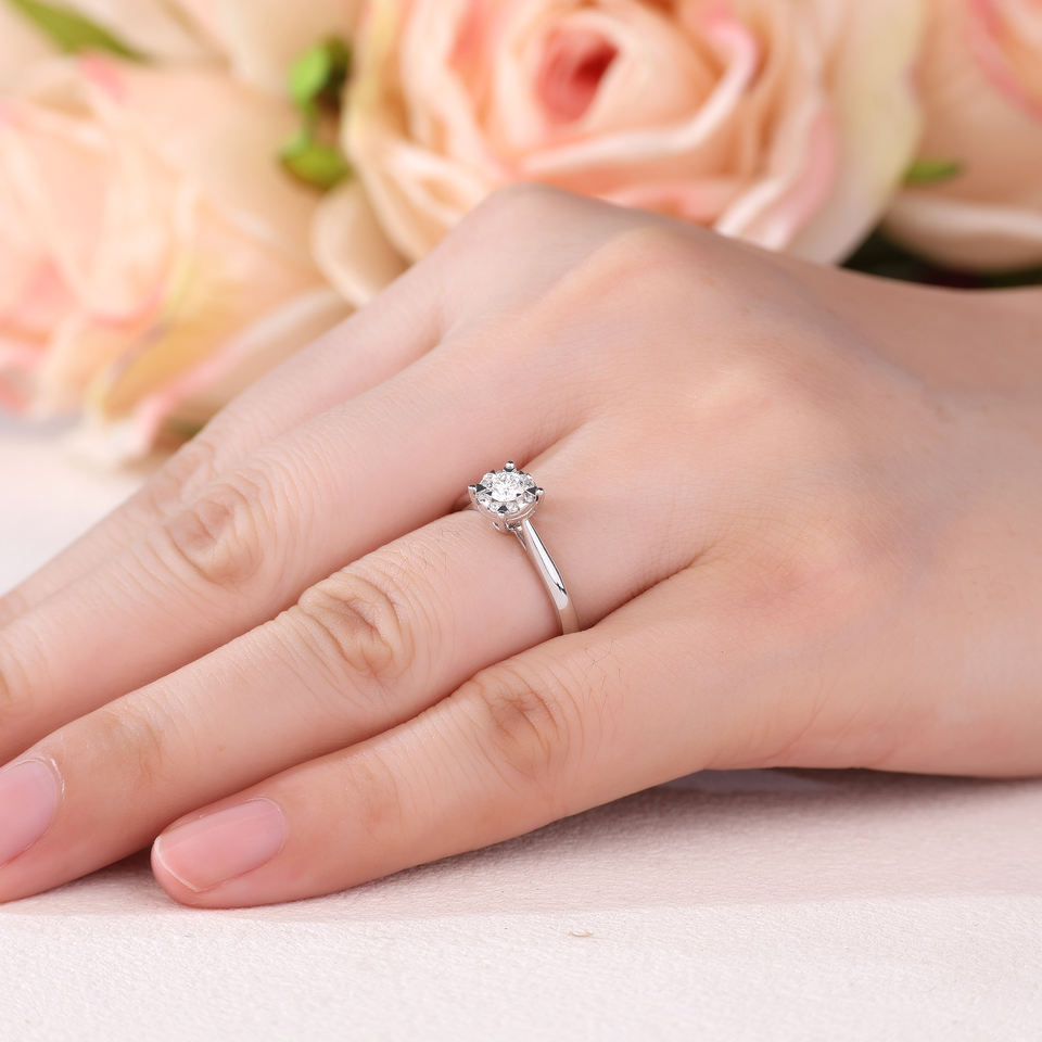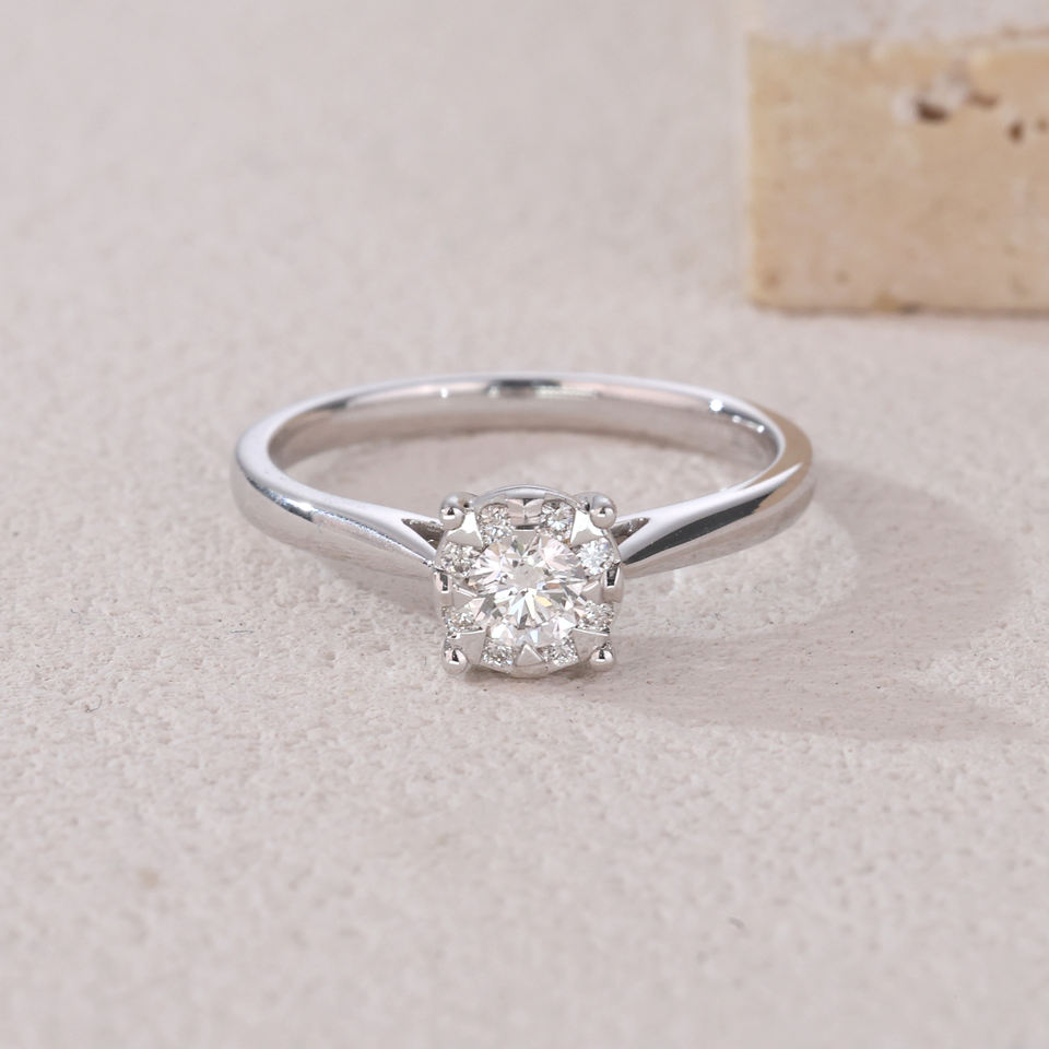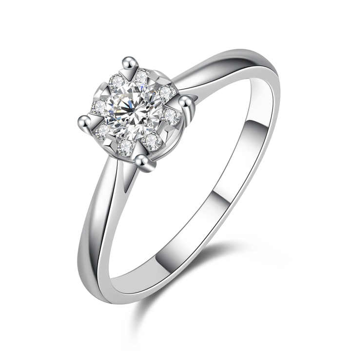 Anillo de Compromiso Cristiano Elegante de Oro Blanco de 18K Personalizable de Fábrica Directa con Engaste de Puntas Certificado, Entrega Rápida, Natural