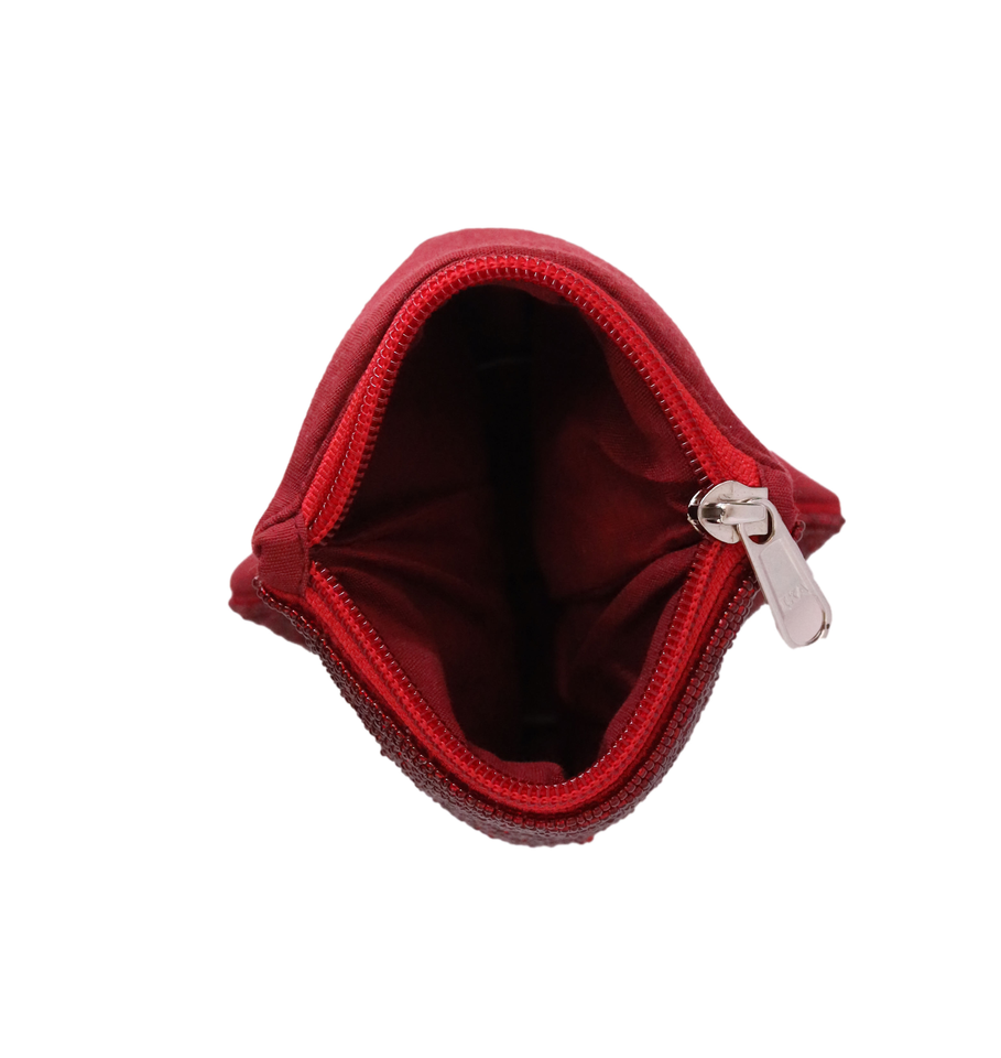 Bolsas de almacenamiento de monedas elegantes con cuentas personalizadas de exportación directa de fábrica, elegante monedero con cierre de cremallera de Color rojo y blanco para el día del juego