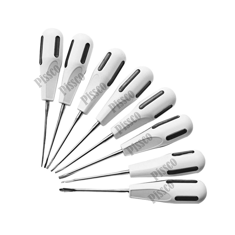 Juego de 8 Elevadores Quirúrgicos de Lujo, Fabricados en Acero Inoxidable Alemán con Mango y Puntas de Plástico, Directo de Fábrica, Marca Pissco