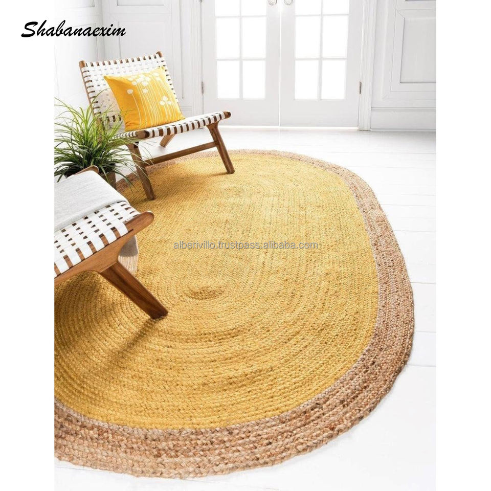 Alfombra Ovalada Trenzada de Yute Hecha a Mano Directamente de Fábrica, Alfombra Decorativa para Sala de Estar, Alfombra para Piso Interior y Exterior de la India
