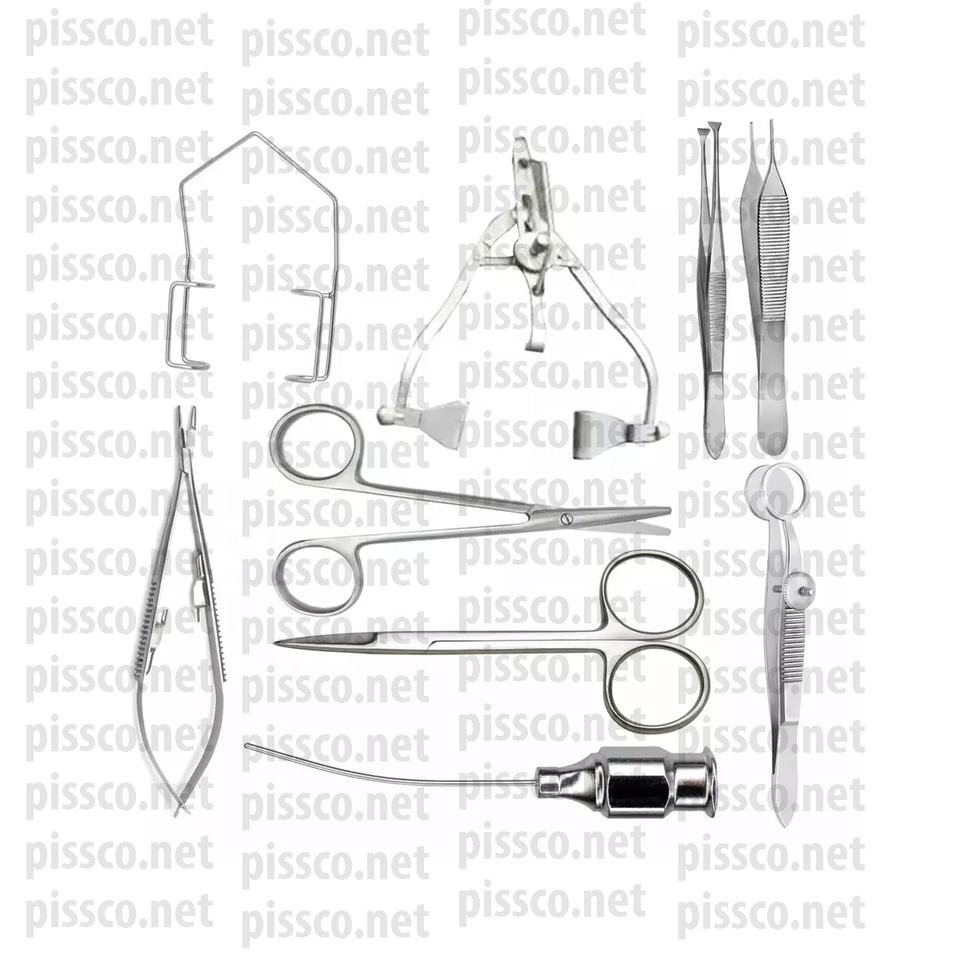 Conjunto de instrumentos de cirugía ocular veterinaria