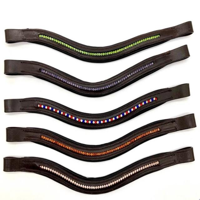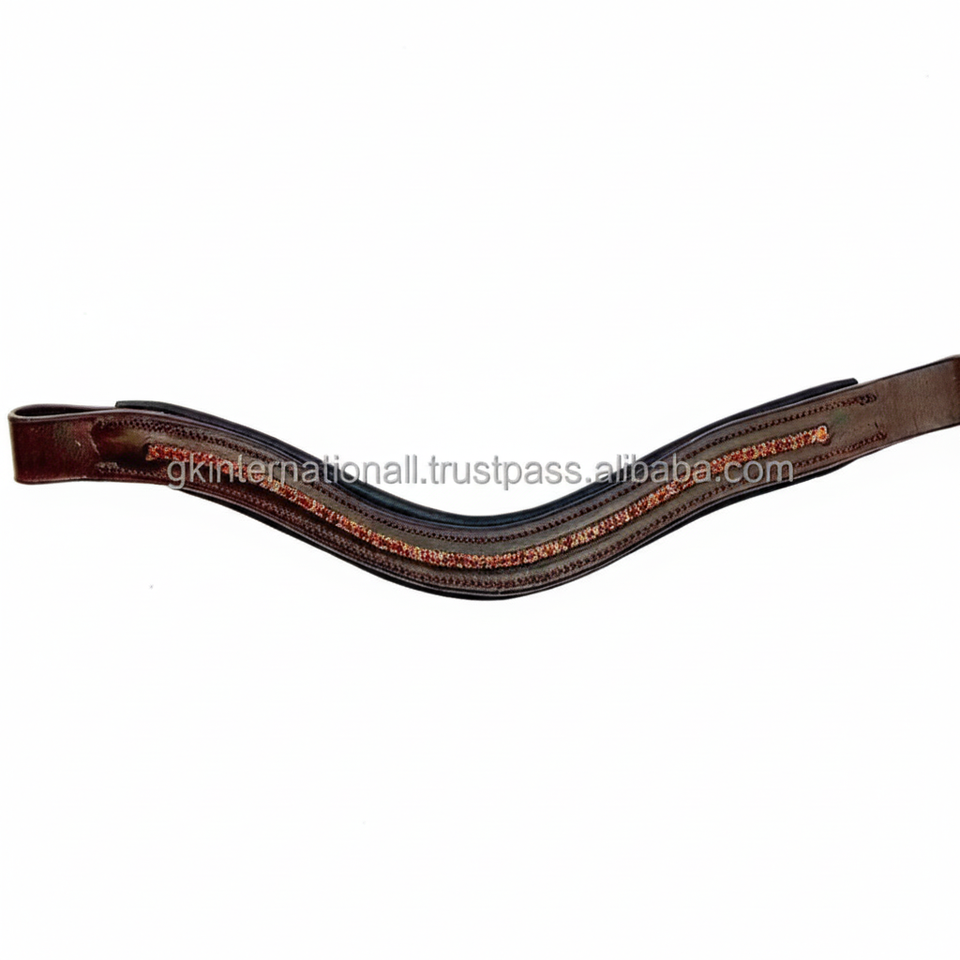Precio directo de fábrica Impresionante forma curva Cuero Caballo Brida Oro Rosa Cristal Ceja Banda Fabricante Suministro directo