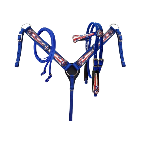 Precios directos de fábrica, conjunto de cuello de cabeza y pecho occidental de nailon azul de alta calidad con riendas, fabricación de proveedores principales en India