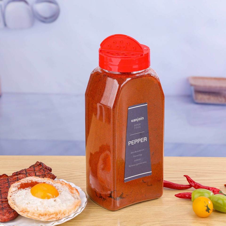 Producto directo de fábrica de grado alimenticio 900ML botellas de coctelera de especias de plástico transparente para mascotas contenedor de especias de plástico Rectangular doble aleta
