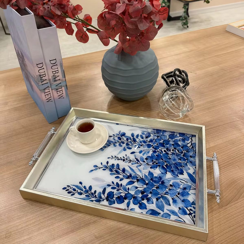 Venta directa de fábrica, bandeja de vidrio personalizada, bandeja de servicio minimalista tradicional moderna, decoración del hogar, mesa, cocina, Hotel, Navidad, oferta
