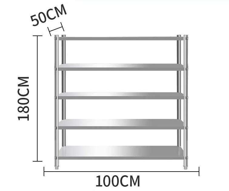 Venta Directa de Fábrica, Estantería de Cocina de Acero Inoxidable de Alta Calidad de Cinco Niveles, Grosor de 0.7-0.9 mm, 25 kg Neto, 28 kg Bruto, para Restaurante