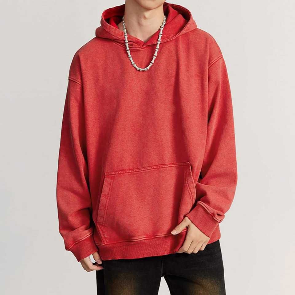 Venta directa de fábrica Sudadera con capucha de lavado ácido para hombre 100% algodón Patrón sólido Impresión digital Uso de invierno Cuello con capucha
