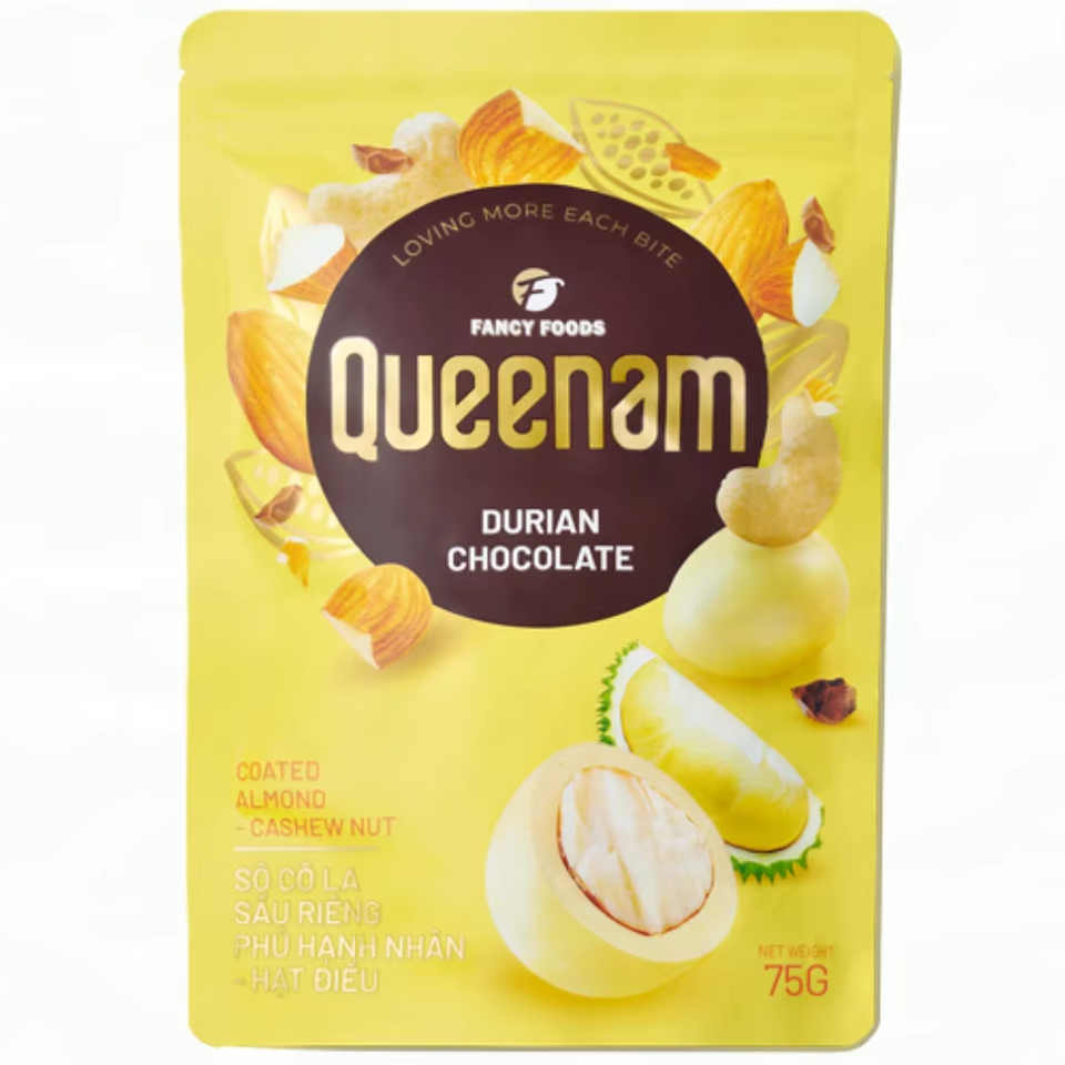 Contenido:Durian Chocolate sabor recubierto almendra anacardo