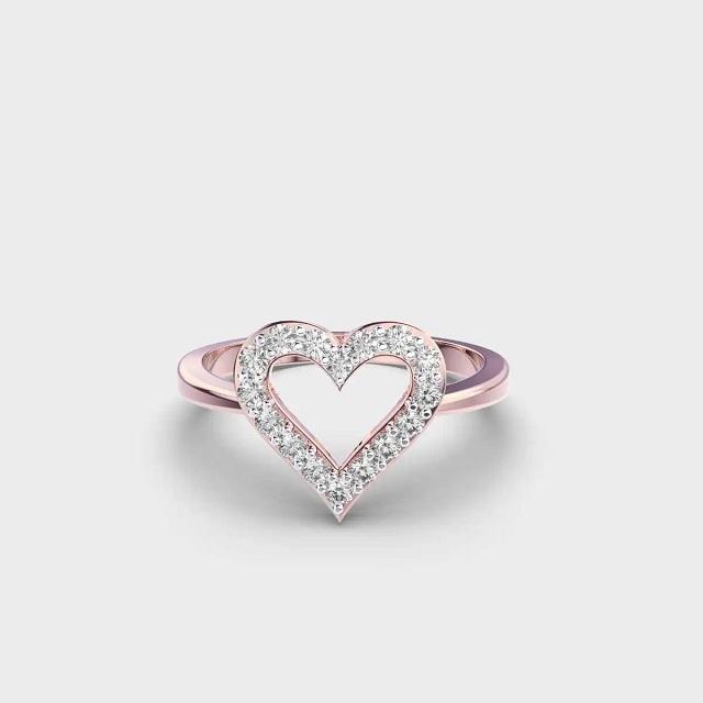 Suministro directo de fábrica Anillo de Bodas de compromiso de oro amarillo de 10K con diamante de corte redondo en forma de corazón clásico para mujer