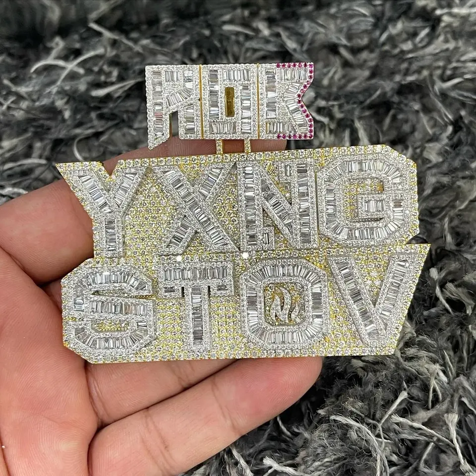 Collar con Colgante de Corte Esmeralda y Baguette, Estilo Hip Hop, Completamente Cubierto de Diamantes, Diseño Único y Personalizado, Disponible para la Venta, Directo de Fábrica