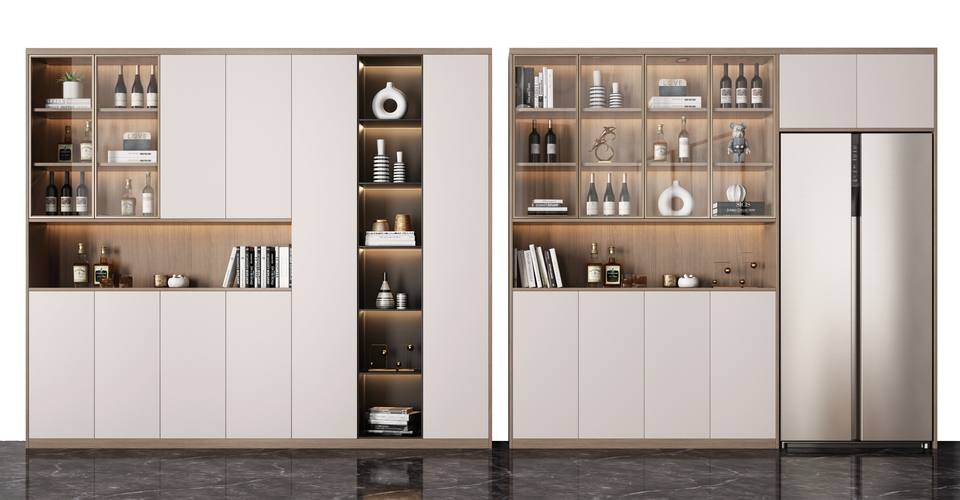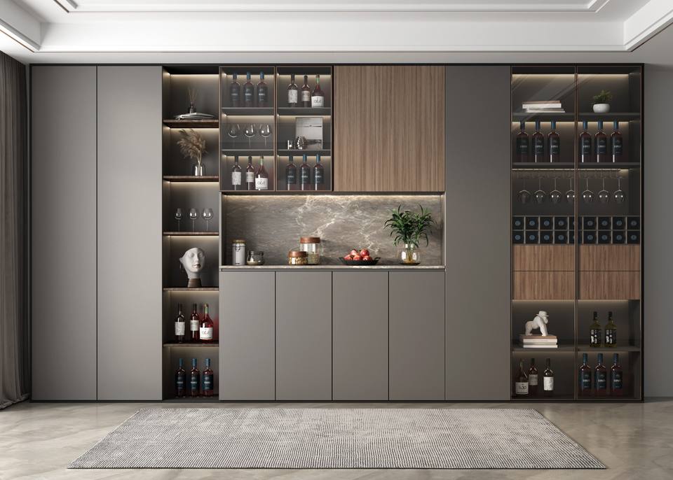 Suministro directo de fábrica Gabinetes de vino personalizados Hermosos estilos grandes en madera
