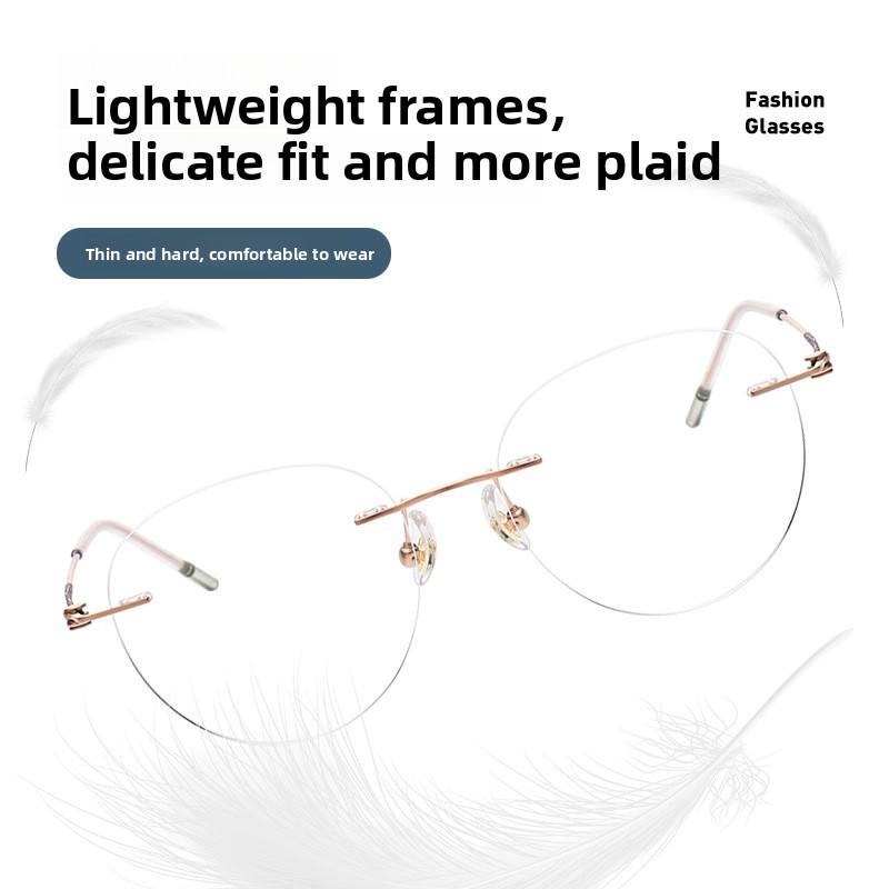 Gafas con Montura de Titanio Sin Aro, Modelo 6073, Anti Luz Azul, con Diamantes, para Hombre y Mujer, Estilo Retro y Clásico, Suministro Directo de Fábrica