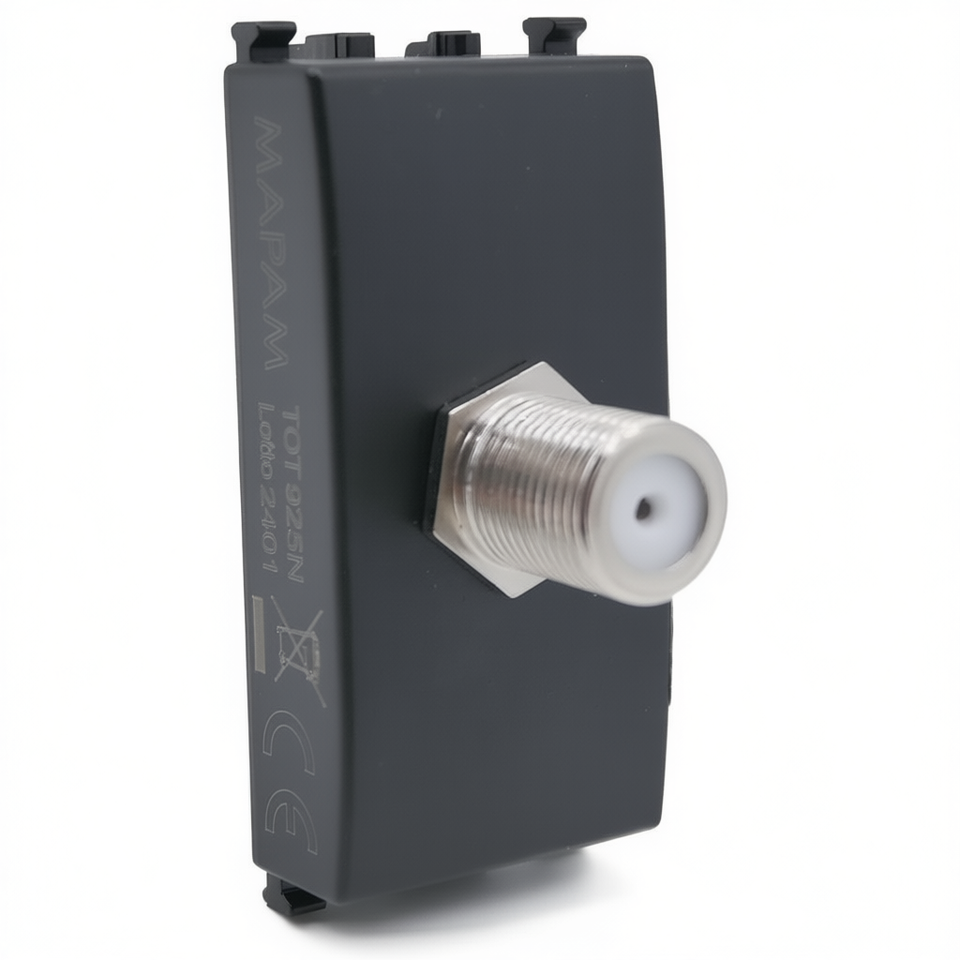 Enchufe de TV Satelital Hembra Directo Compatible con Vimar Arke Negro 925N Mapam