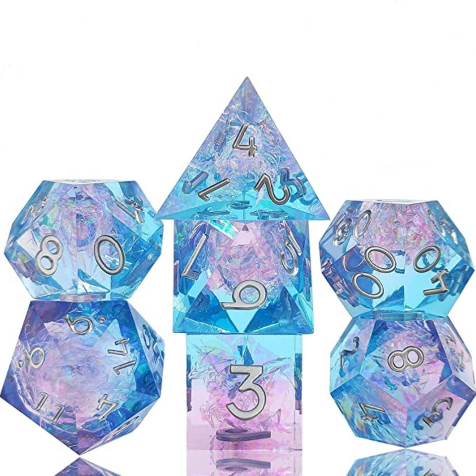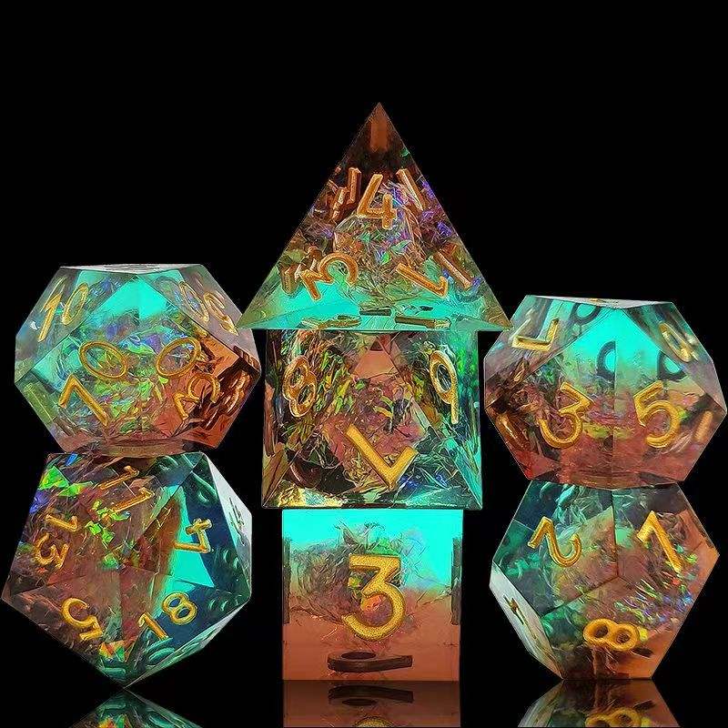Directo de fábrica, juego de siete lados de alta calidad de dados de resina de ilusión de bordes afilados, dados de juego de varios lados