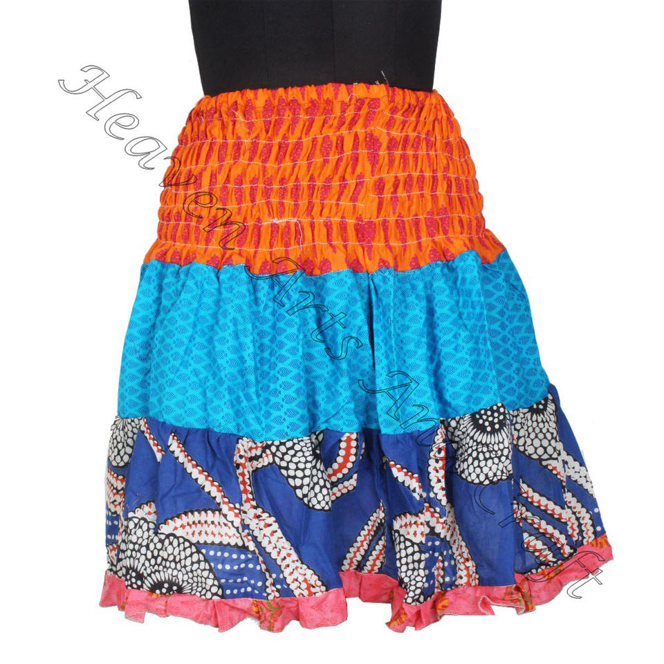 Palabras clave:Mini falda con parches de sari de algodón vintage