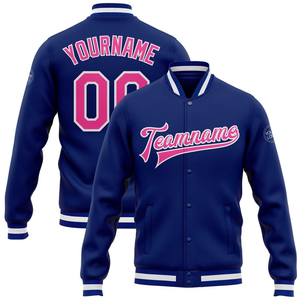 Chaqueta Bomber Casual de Invierno al por Mayor Directo de Fábrica, Personalizada, Azul Claro, Negro-Rosa, con Botones a Presión, Estilo Universitario, Dos Tonos