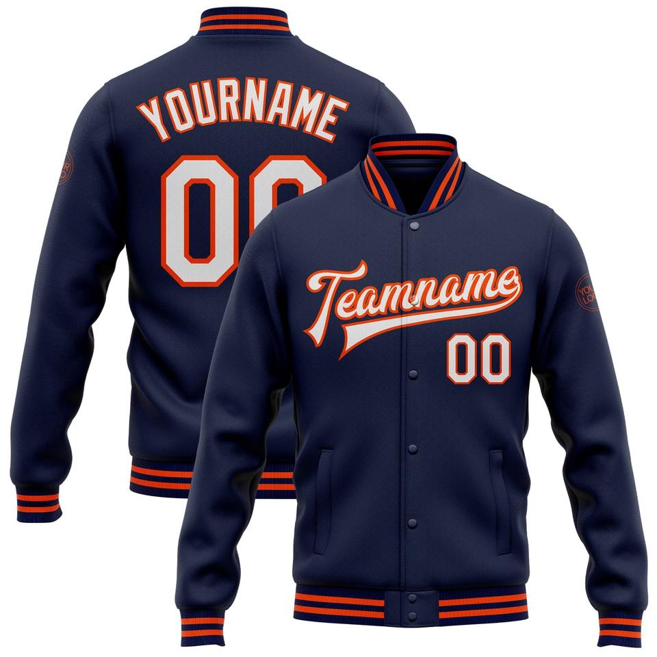 Chaqueta Universitaria de Invierno Informal Personalizada al por Mayor Directa de Fábrica, Color Blanco, Azul Marino y Rojo, con Botones a Presión