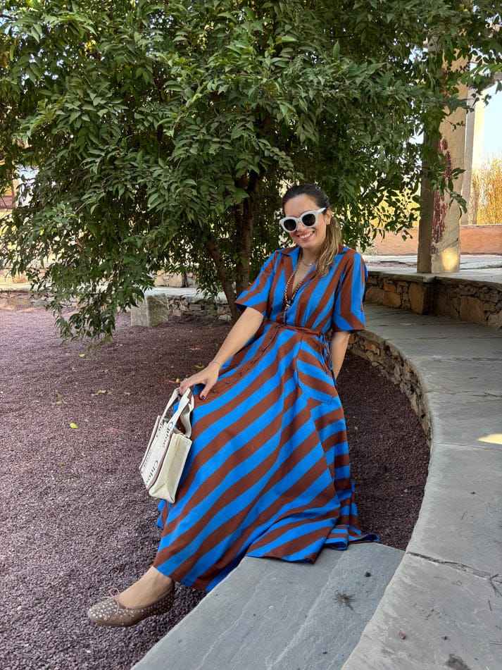 Vestido Midi a Rayas Clásico Vibrante de Verano, de Algodón, de Alta Calidad, Fabricación Directa, Personalizable