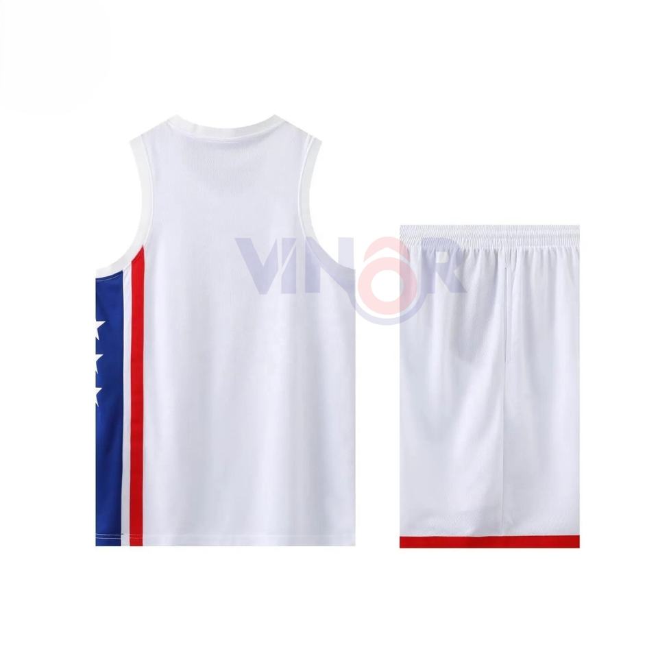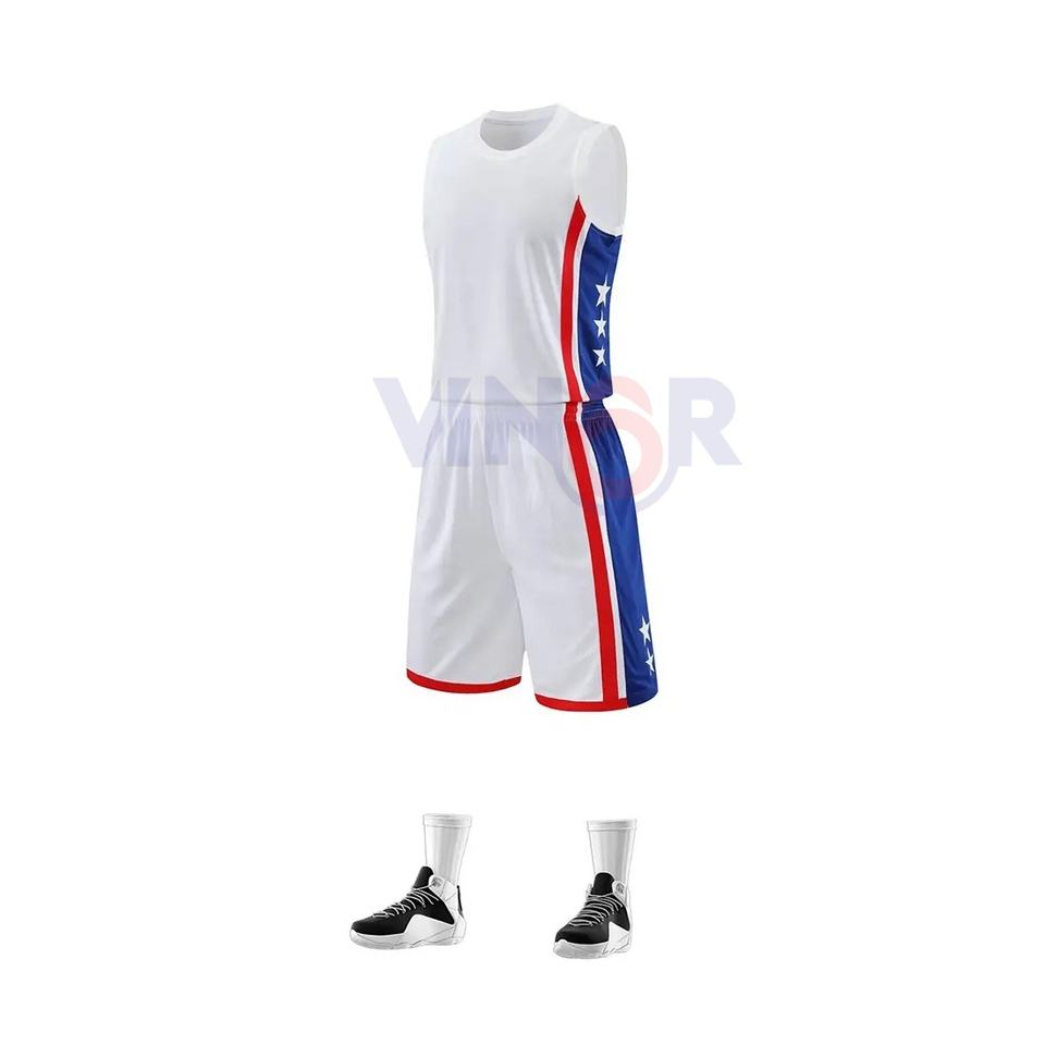 Directo fabricante personalizado impreso azul baloncesto uniforme sin mangas camisa sudadera pantalones de chándal sublimación técnica Logo