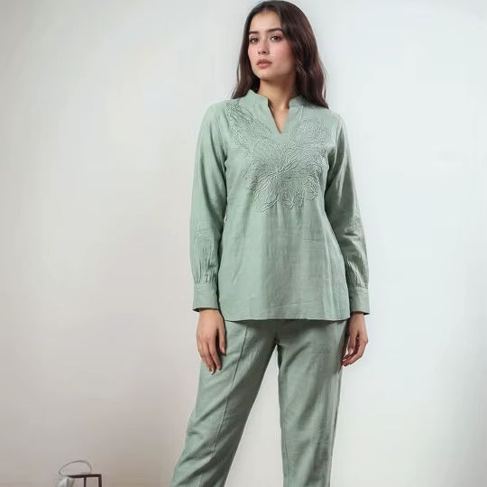 Fabricante Directo, Ropa de Dormir de Verano para Mujer de Alta Calidad, Bordada y Personalizada, Mangas Largas, Georgette Transpirable de Alta Calidad