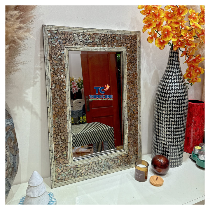Espejo de Nácar con Marco de Mosaico Marrón, Venta al por Mayor, Directo de Fábrica, Espejo de Nácar de Vietnam