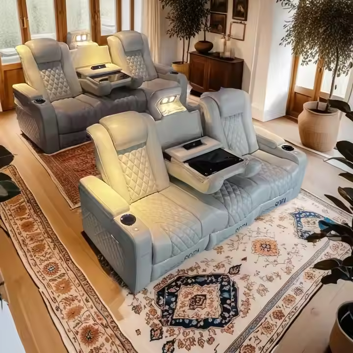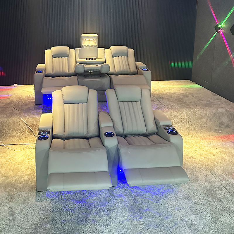 Venta directa de fabricante, silla reclinable, último diseño, sofá de cine en casa, asiento eléctrico, tela de microfibra, juego de silla tumbada de película