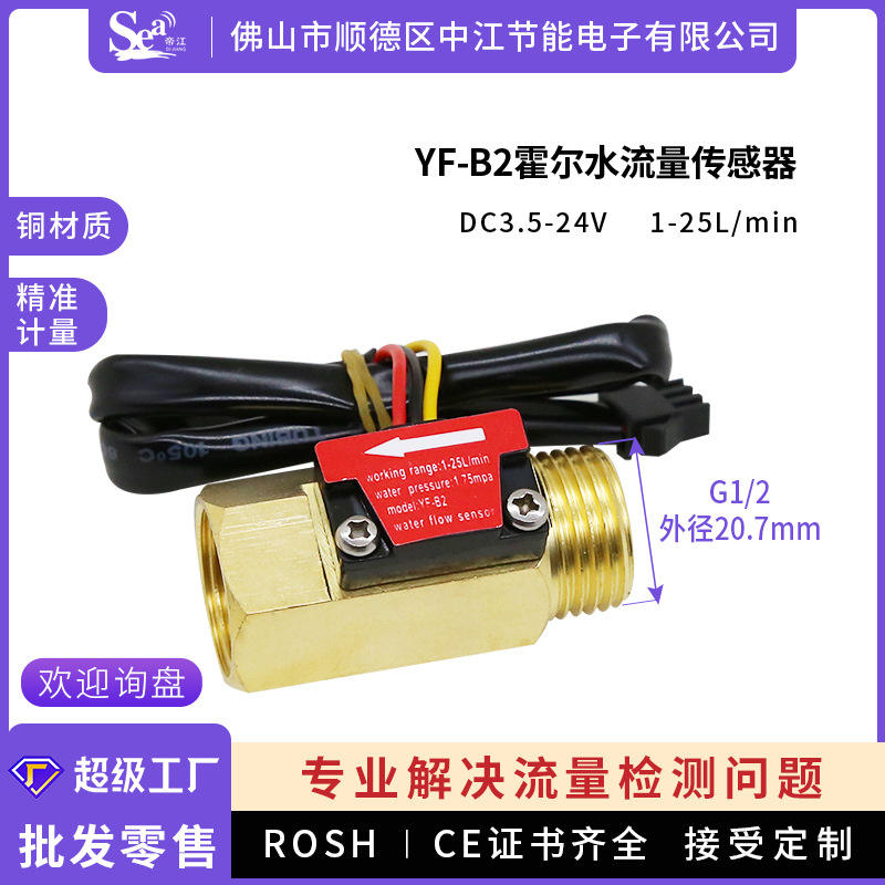 Medidor de Flujo de Agua de Efecto Hall de 4 Puntos del Fabricante Directo, Sensor de Flujo de Turbina de Plástico B2 para Calentador de Agua, Flujo de Agua de Cobre