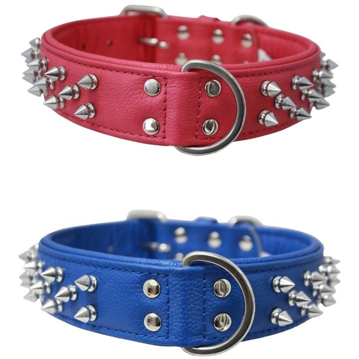 Collar de perro de cuero de vaca de calidad superior del fabricante directo, tachuelas de punta suave de lujo, patrón sólido, correas de mascotas con remaches personalizados