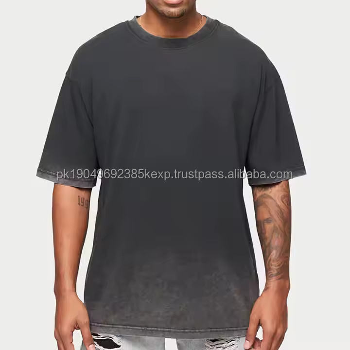 Camiseta Negra Vintage Lavada y Desgastada con Estampado Gráfico para Hombre, de Manga Corta, Estilo Casual, Diseño de Impresión, Directo de Fábrica