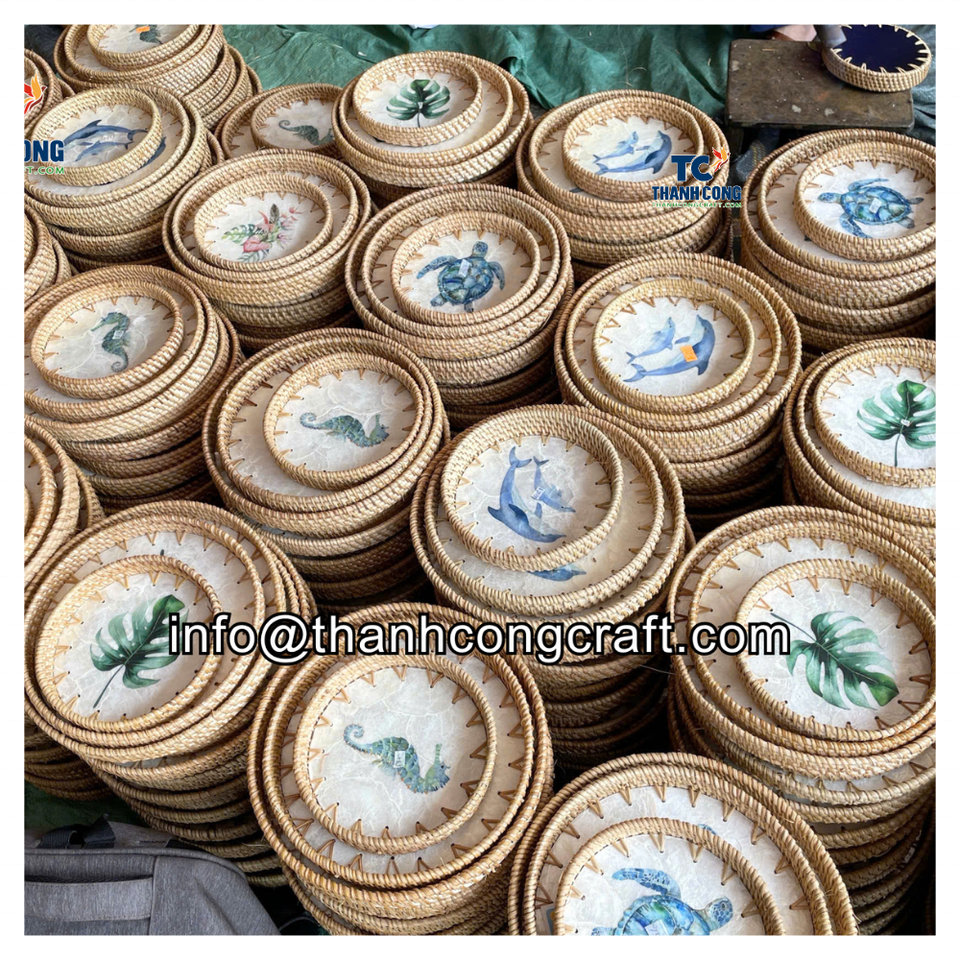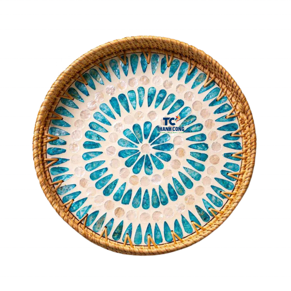 Bandeja de ratán con nácar, elegante, hecha a mano, de fábrica OEM directa, Vietnam