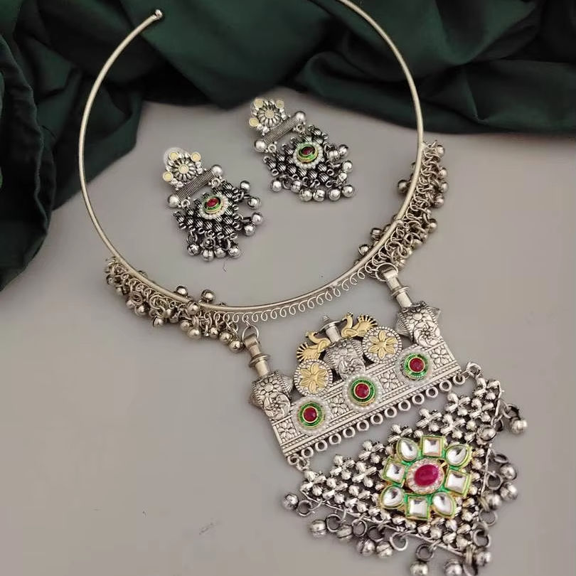 Product Name:KSHITI Oxidised two tone Hasli Necklace Earrings Set