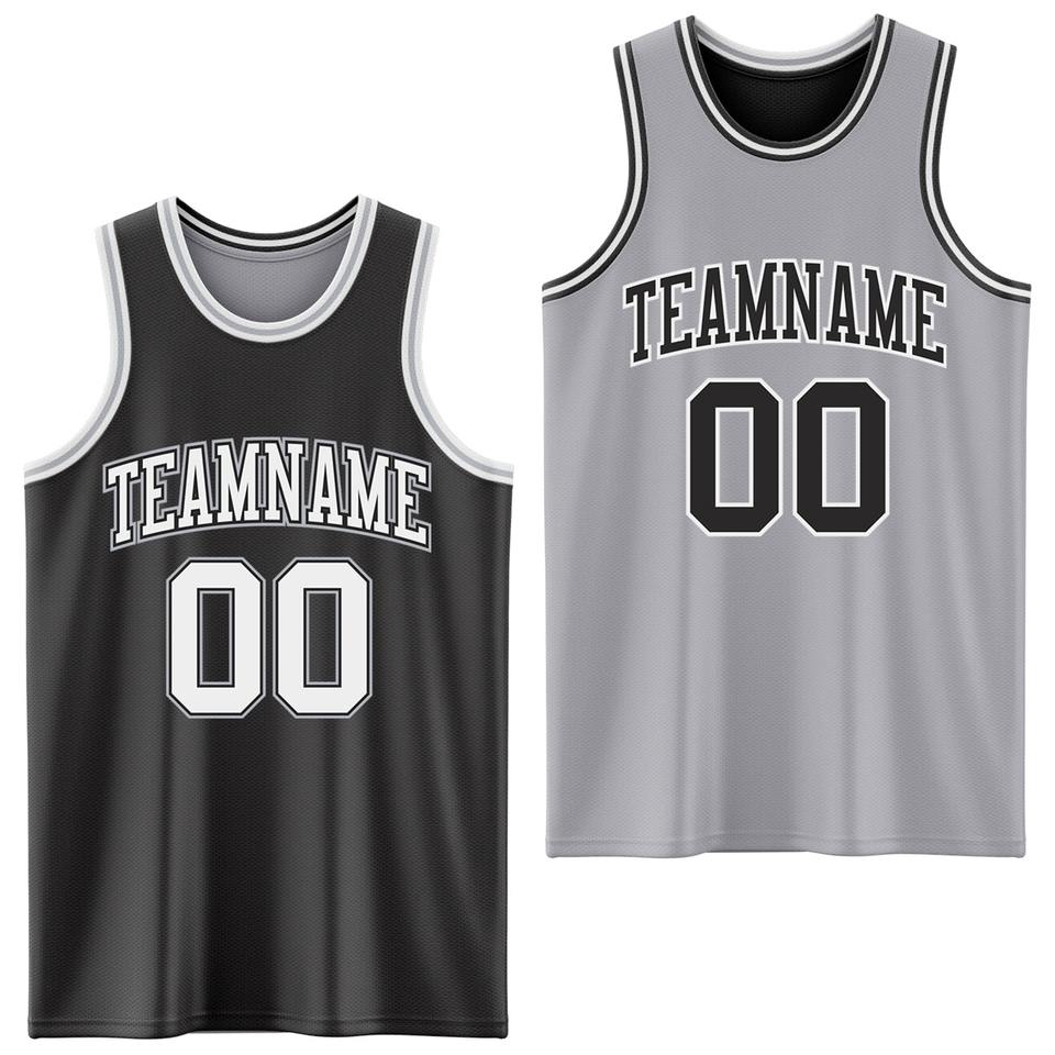 Directamente de la marca Engro Sports Custom Reversible Negro Blanco-Gris Sublimación de doble cara Traje de baloncesto Jersey