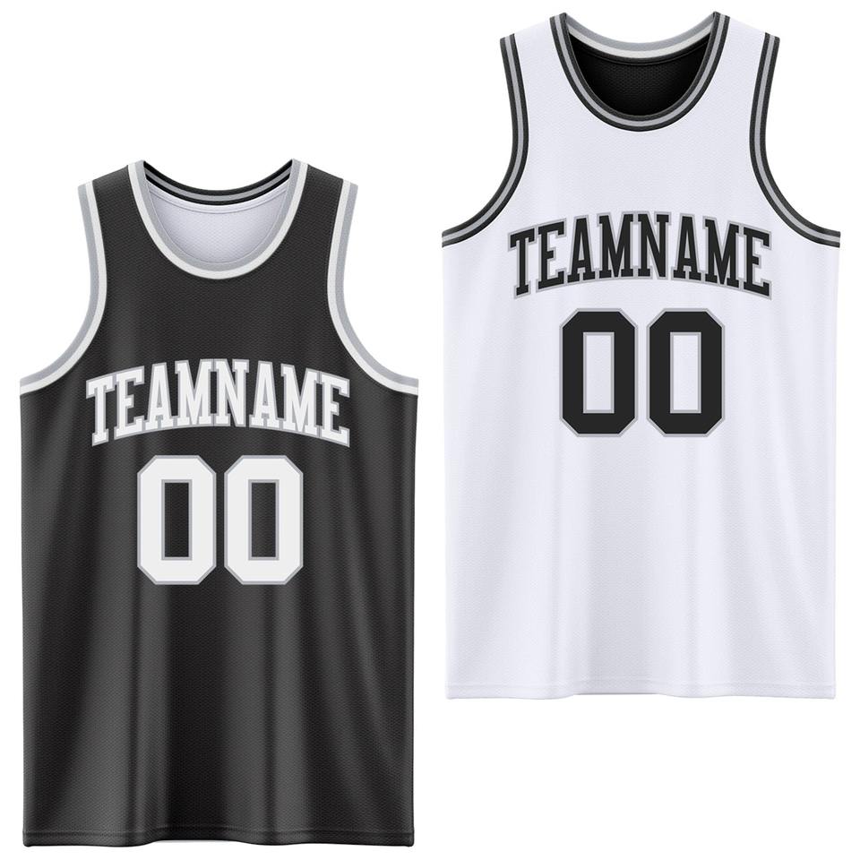Directamente de la marca Engro Sports Custom Reversible Negro Blanco-Gris Sublimación de doble cara Traje de baloncesto Jersey