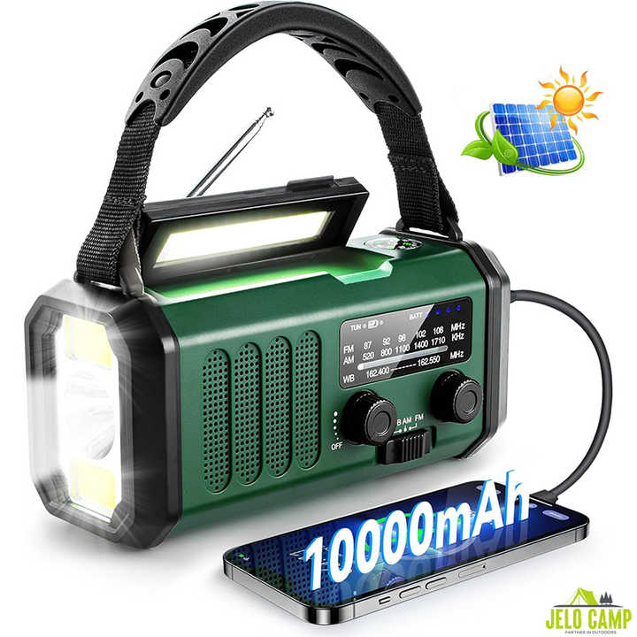 Radio Meteorológica de Emergencia con Manivela Solar para Preparación de Desastres y Terremotos, Banco de Energía de 10000mAh, Luz para Acampar al Aire Libre