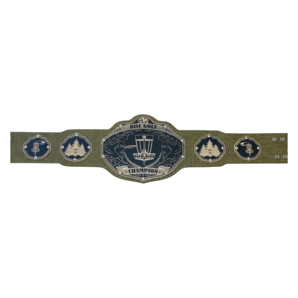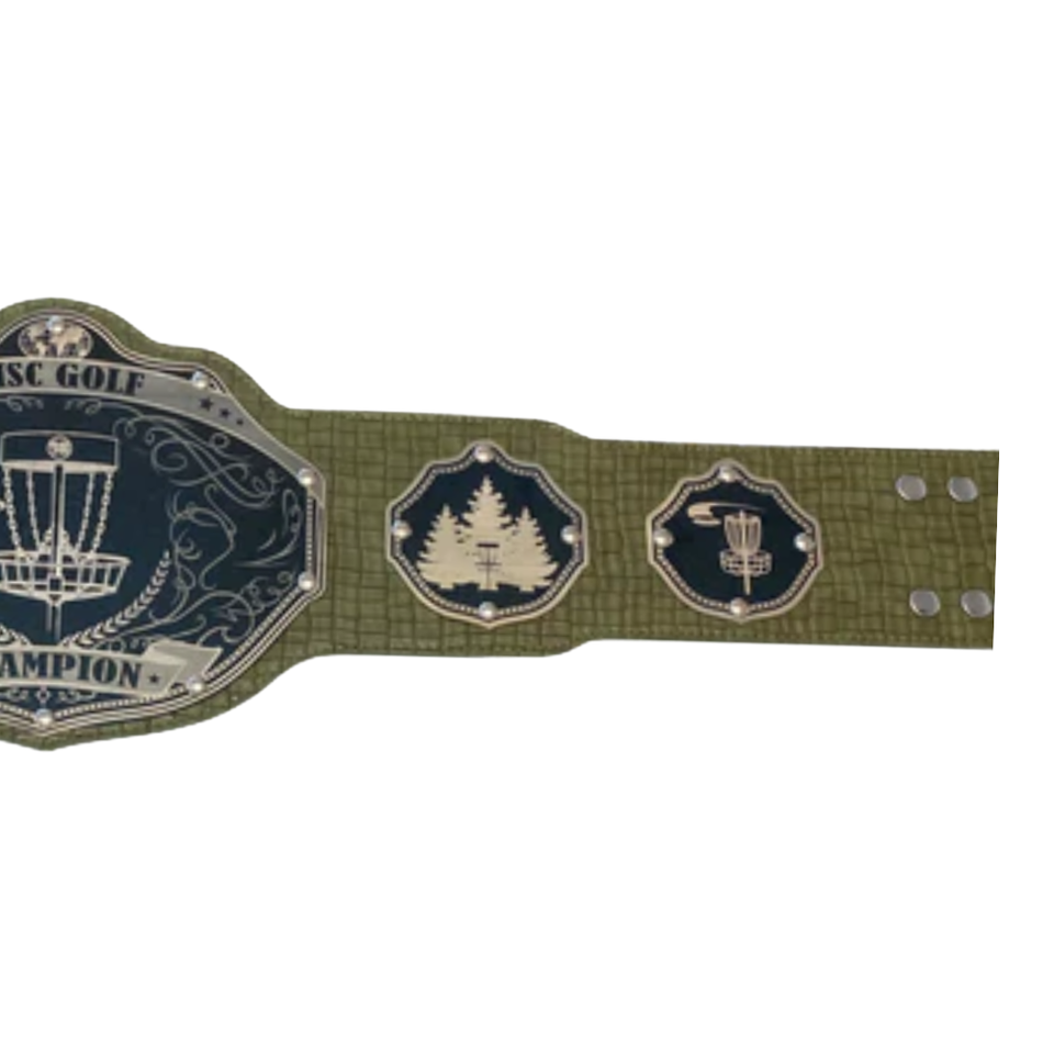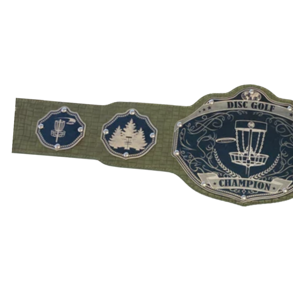 Cinturón de Campeón de Disc Golf Personalizable, Cinturón Deportivo de Alta Calidad, Cinturón de Título Personalizado, Edición de Coleccionista Verde y Azul
