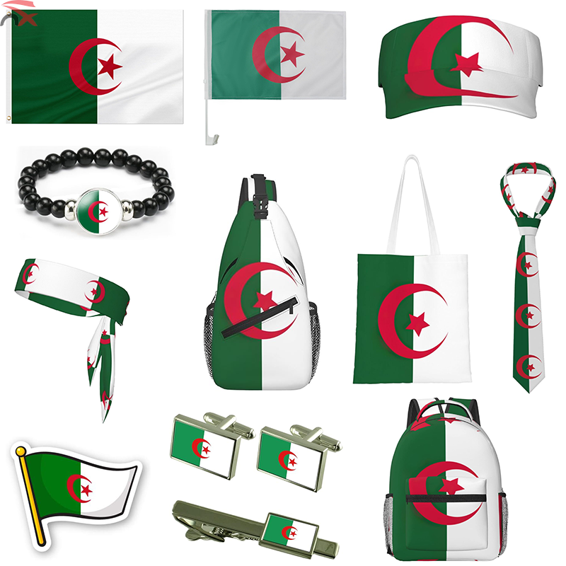 Oferta de Descuento, Diseño Personalizado con Logotipo, Recuerdos de Fiesta Internacionales, Gorra y Pulsera con la Bandera de Argelia para Actividades y Regalos
