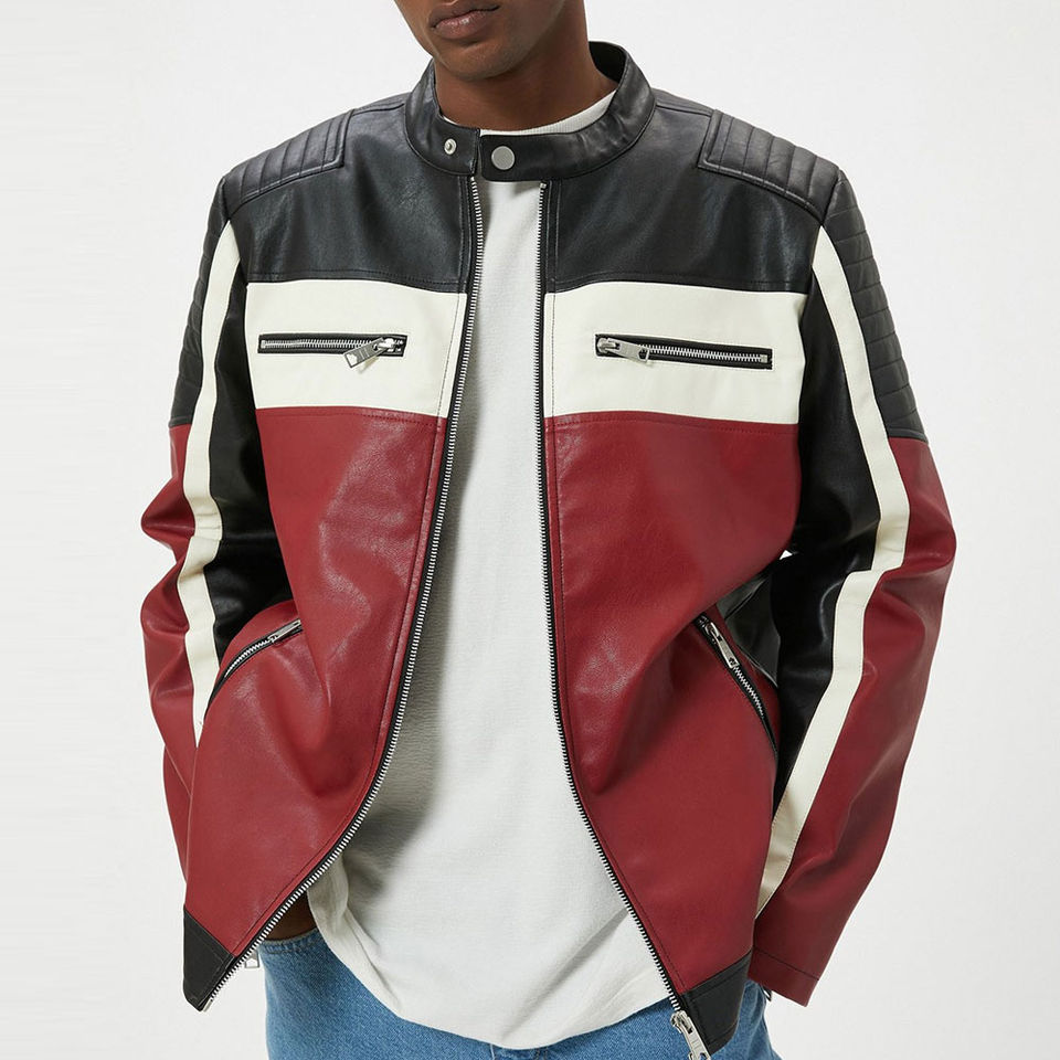 Chaqueta de cuero para hombre con diseño de logotipo personalizado de peso pesado, traje de moda de calle alta, chaqueta de cuero de motorista para hombre