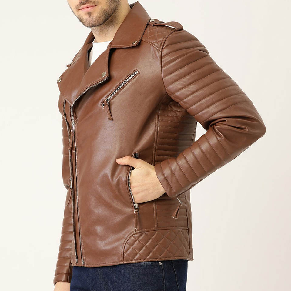 Chaqueta de cuero de motorista para hombre con múltiples bolsillos laterales a precio con descuento, chaqueta de cuero para hombre de Material duradero recién llegado para exteriores