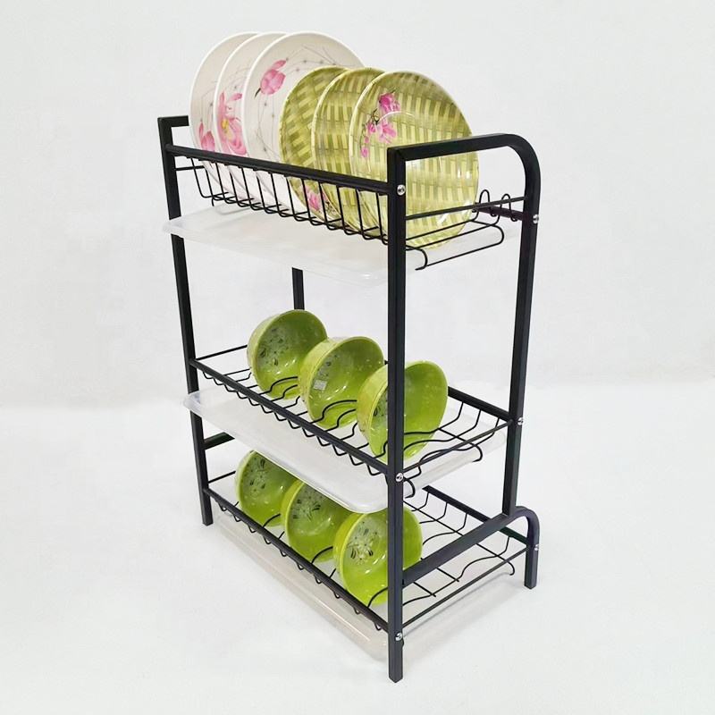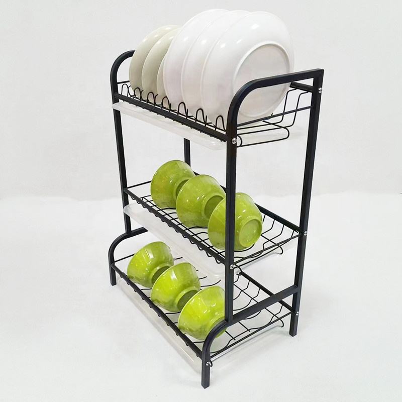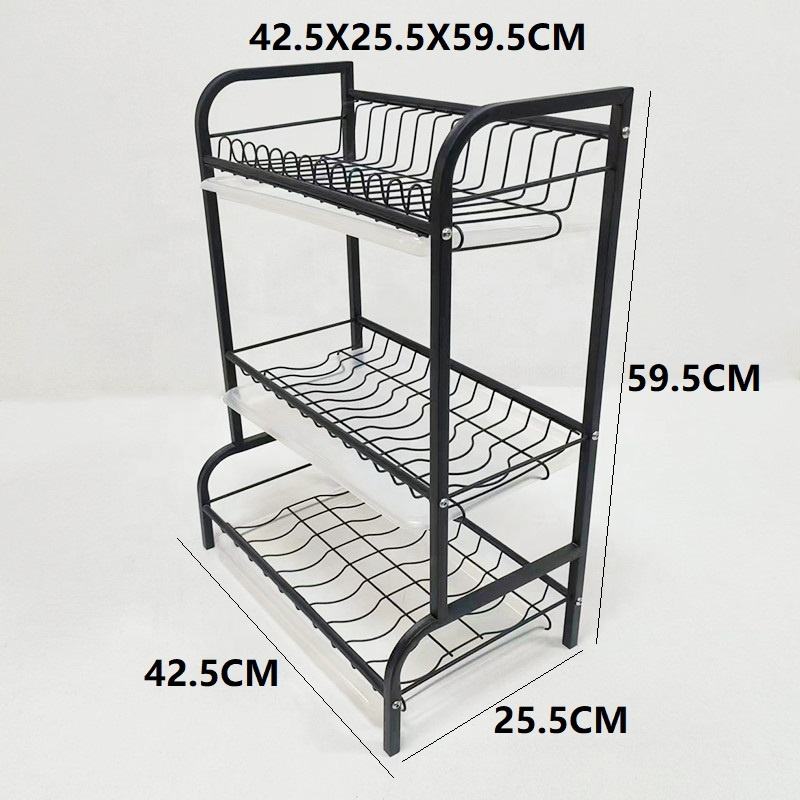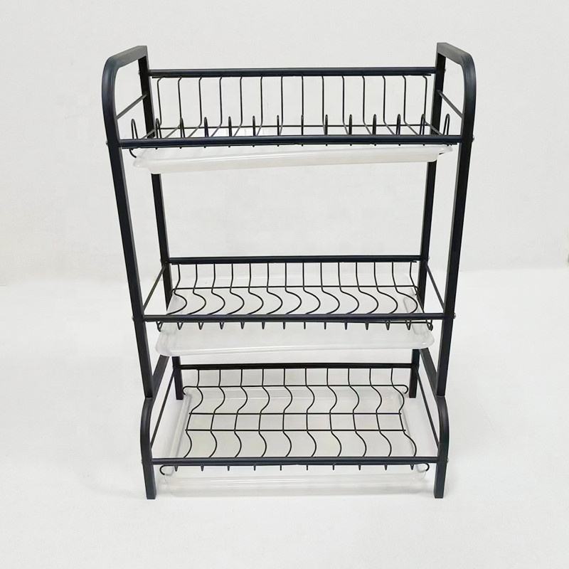 Estante de secado de platos Estante para platos de 3 niveles con bandeja Soporte para utensilios Escurridor de platos con soporte para tabla de cortar Tabla de drenaje