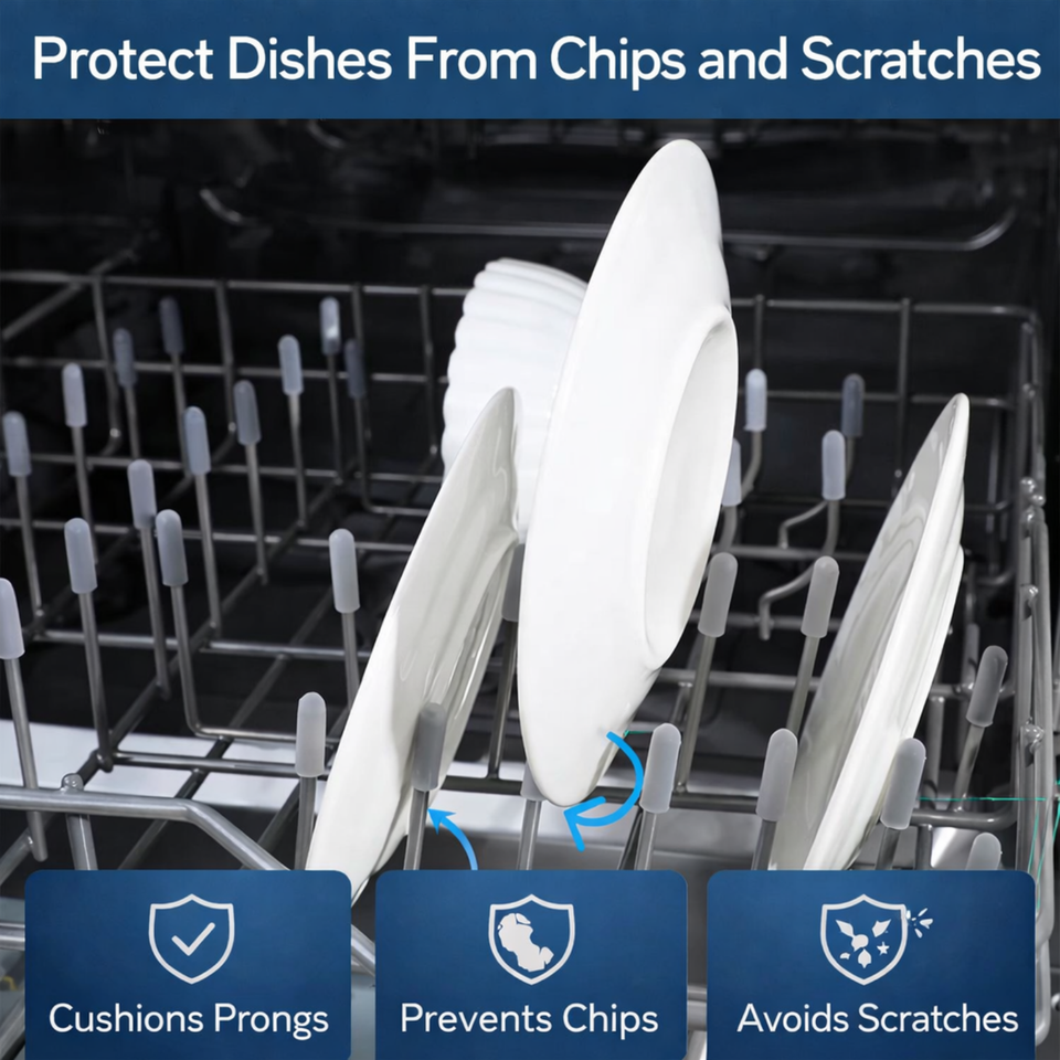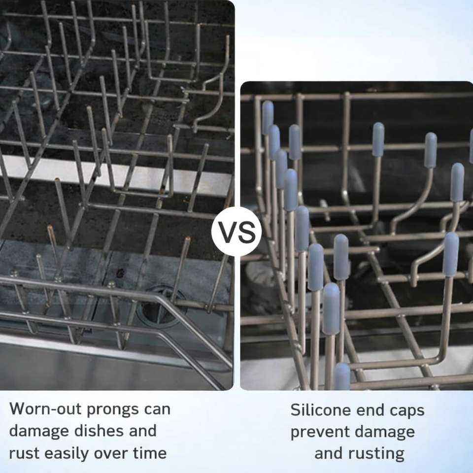 Tapas de Repuesto para Dientes de la Rejilla del Lavavajillas, Cubiertas de Silicona para Puntas Oxidadas, Ajuste Universal, Gris