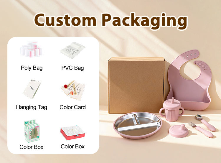 Plato de Acero Inoxidable con Ventosa para Niños, Apto para Lavavajillas, Juego de Alimentación de Silicona para Bebés con Mangas de Silicona Extraíbles